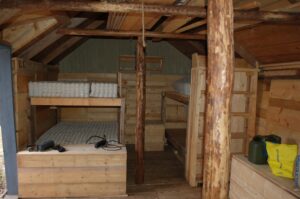 Husets karaktär: Huset har två rum, varav det ena består av en stor dubbelbädd och det andra av britsar att sova på samt begränsad förvaring. Alla bäddar har fjädermadrass.